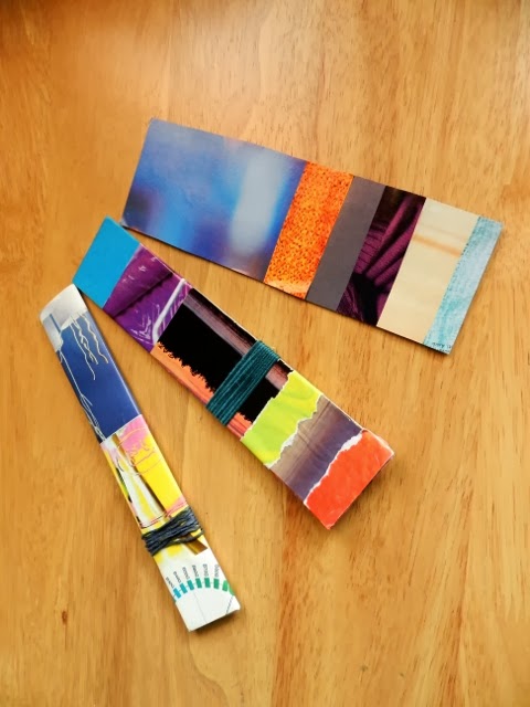 Kurssin alussa saimme kokeilla materiaalikontrastien tekemistä. Tehtävänantona oli, että pujoteltavasta työstä pitäisi karsia muut kuin vaaditut kontrastit minimiin. Tässä muutamia pujottelujani. Palttinaa muistuttavat pujottelut olisivat tietysti olleet helppoja ja nopeita, mutta halusin tehdä tämän vaikemman kautta. Homma lähti melkein lapasesta, kun yritin keksiä millä kaikilla mielenkiintoisilla tavoilla langat saataisiin pysymään pahvinpalan ympärillä...